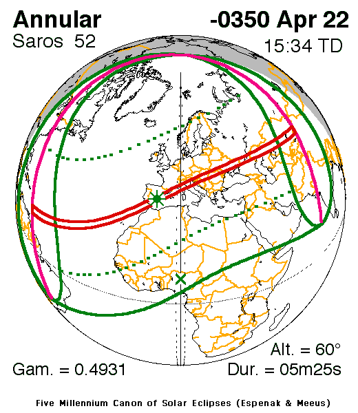 Lien vers tableau des dates grégoriennes des Éclipses de Soleil visiblent en Gaule ;