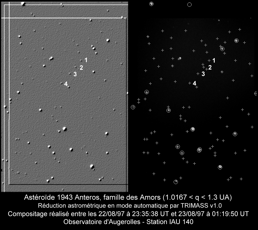 A cette période, l'Astéroïde 1943 Anteros faisait partie de la "liste critique". Sa position était considérée comme "mal connue". Par une série de prises de vues, nous avons mesuré ses positions (sur chaque image séparément). Les positions obtenues ont été communiquées au Minor Planet Center MPC.